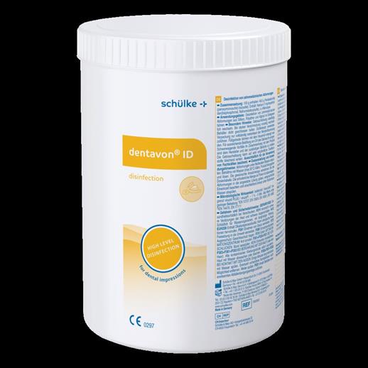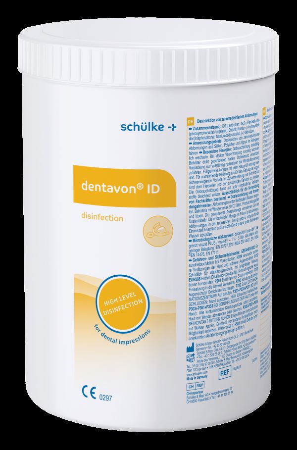 Aldehyde-free disinfectant based on active oxygen for the disinfection of dental impressions through complete immersion.