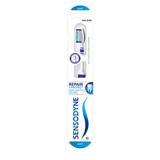 Sensodyne Repair and Protect toothbrush has been designed for people with sensitive teeth. Bristles flex on contact with teeth and gums to help provide gentle cleaning. The outer bristles have tapered filaments that makes the soft tip even more flexible to help protect against over-brushing.