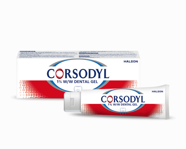 Corsodyl® 1% w/w Dental Gel is an aid for the treatment of gum disease. Active Ingredient 1% w/w chlorhexidine digluconate. Recommended for patients with gingivitis and conditions that require a longer contact time with oral surfaces e.g. mouth ulcers and fungal infections of the mouth (oral thrush/denture stomatitis) and post- periodontal surgery to promote gingival healing. Not for use by children under 12 years of age, unless on advice of a dental professional or doctor.