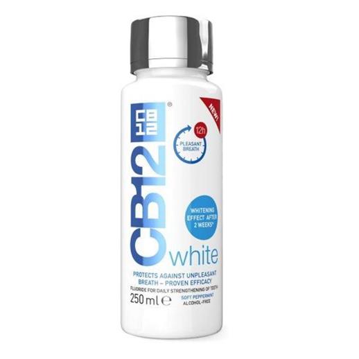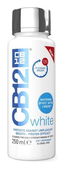 CB12 White is scientifically proven to help whiten teeth after two weeks, used twice a day after brushing. It helps reduce staining particles (for example, those caused by coffee, tea, red wine and nicotine) that cause teeth discolouration and helps protect against new stains. CB12 White is non-abrasive and includes fluoride to strengthen the enamel. CB12 scientifically proven and patented formula provides pleasant breath for 12 hours by neutralizing the processes that cause unpleasant breath. Recommended for daily use. Alcohol-free. Not for children under 12 years of age.