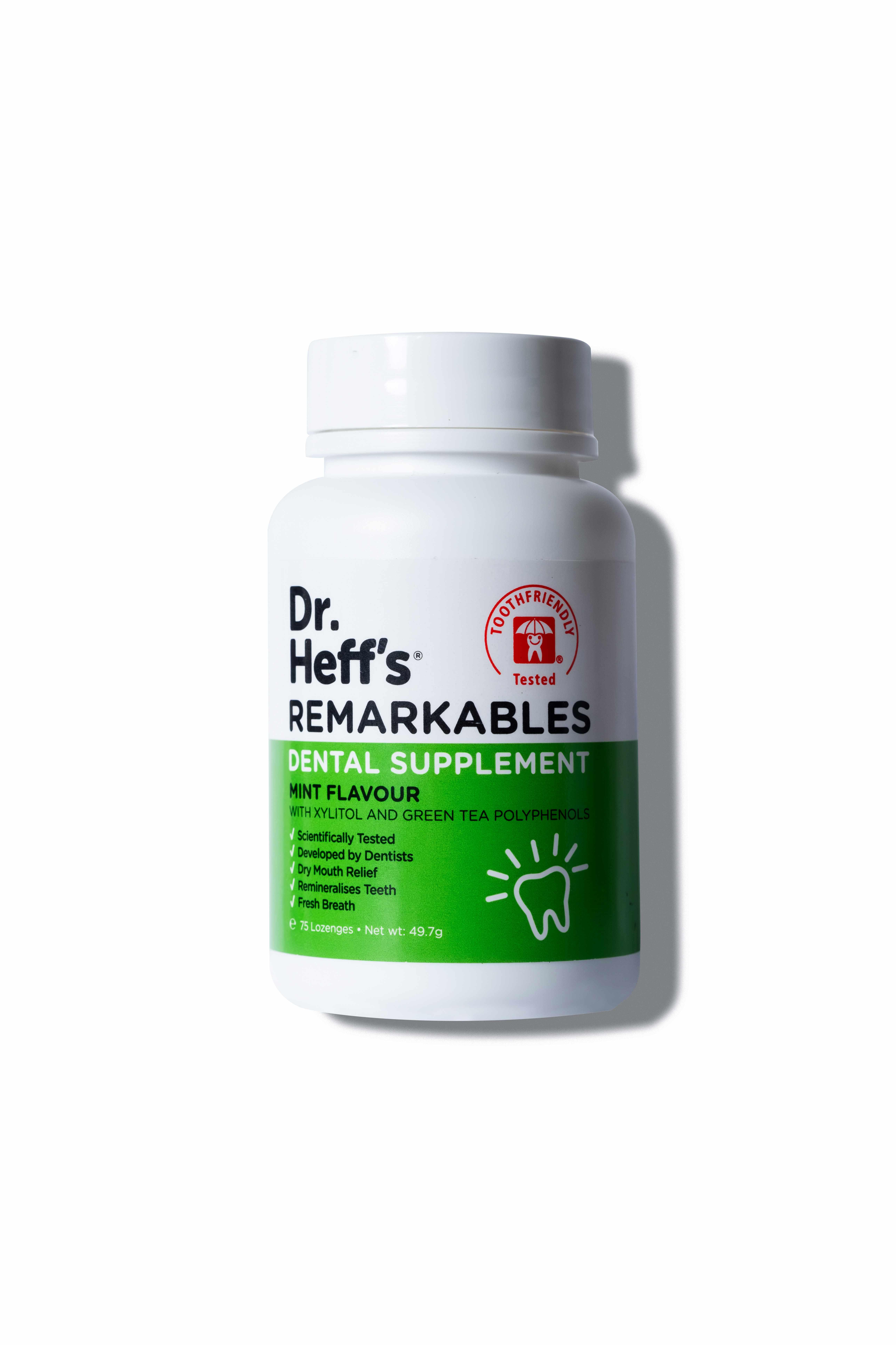 Dr. Heff’s Remarkable Mints have been invented by dentists to help everyone keep their teeth clean and healthy throughout the day. As well as tasting great, Dr. Heff’s Remarkable Mints both reduce plaque and help to repair the damage done by tooth decay. Completely sugar-free, they help to clean and protect teeth 24/7, as well as combat bad breath.